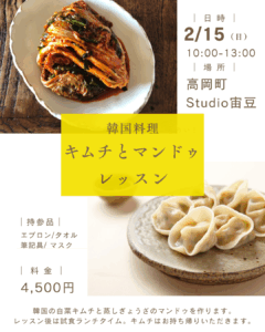 白菜がとても美味しい季節です。2月も白菜キムチを作っていきます。今回は韓国のマンドゥ(蒸し餃子)も一緒に。